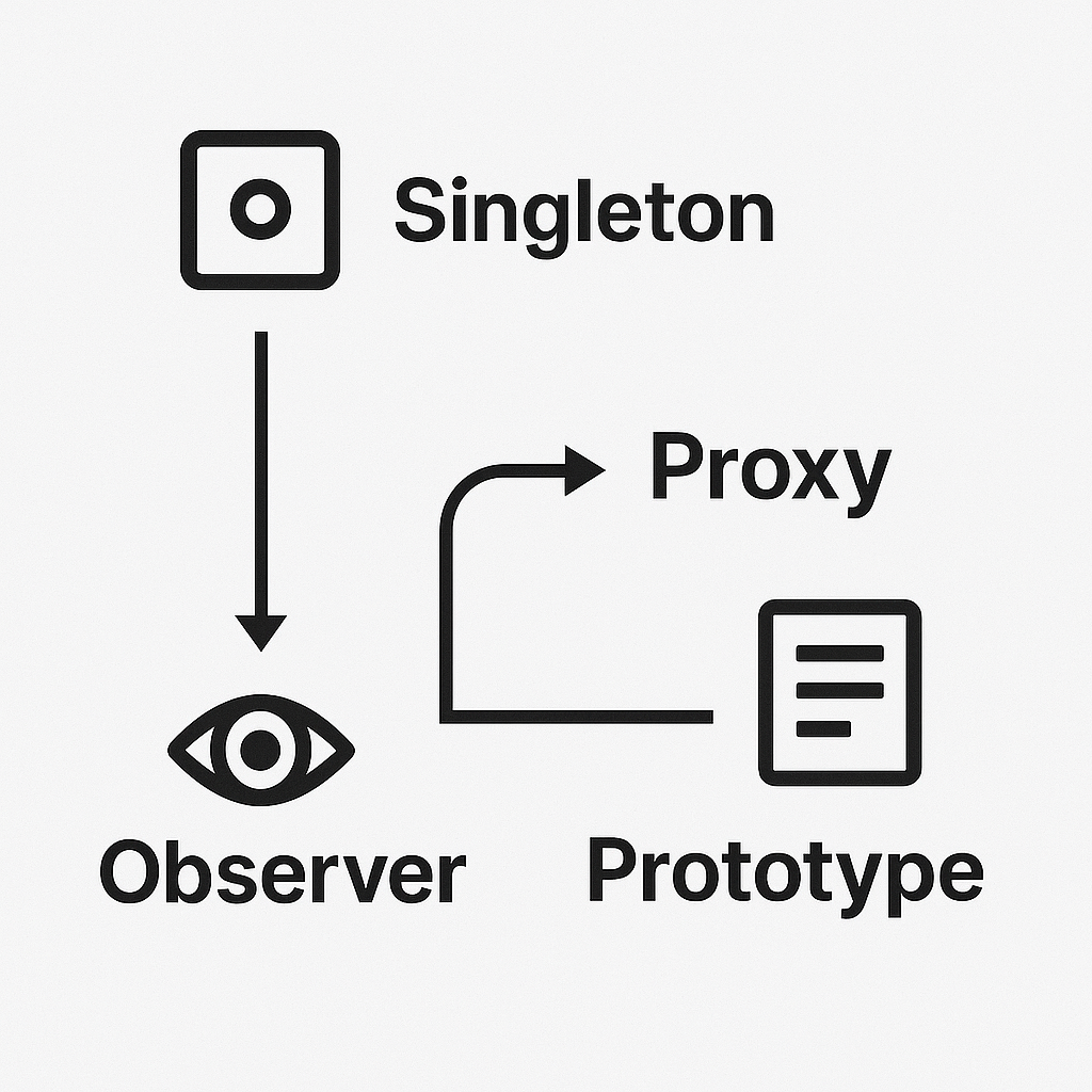 - 기존 객체를 복제(clone) 하거나, 프로토타입 체인을 통해 상속하여 새로운 객체를 만드는 패턴입니다.